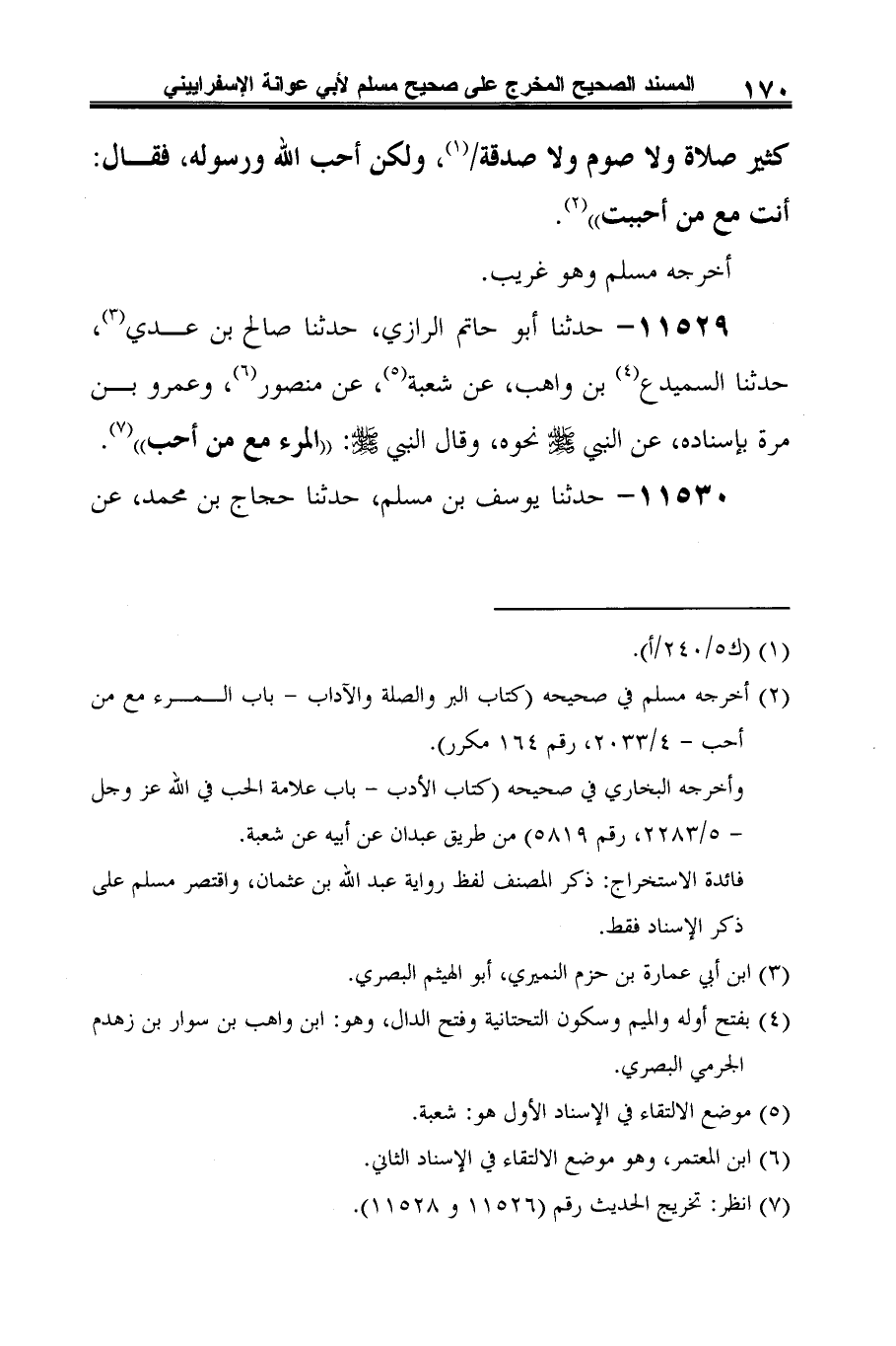 (¬2) أخرجه مسلم في صحيحه (كتاب البر والصلة والآداب -باب المرء مع من أحب -4/ 2033، رقم 164 مكرر).