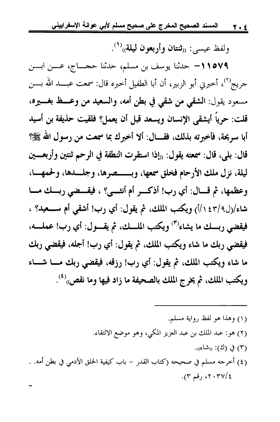 (¬3) أخرجه مسلم في صحيحه (كتاب القدر -باب كيفية الخلق الآدمي في بطن أمه .. 4/ 2037، رقم 3). =