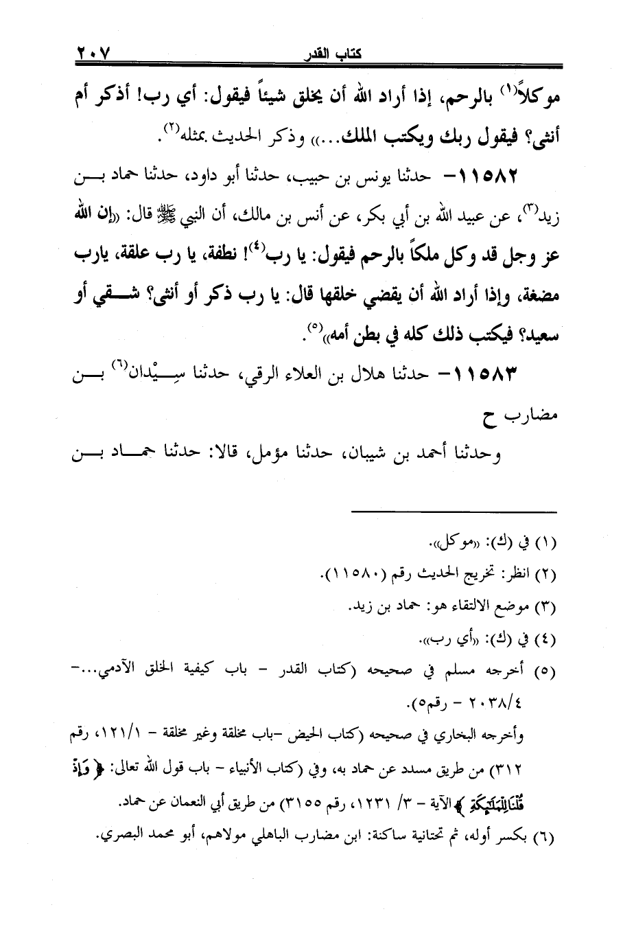 (¬3) أخرجه مسلم في صحيحه (كتاب القدر -باب كيفية الخلق الآدمي ... - 4/ 2038 - رقم 5).