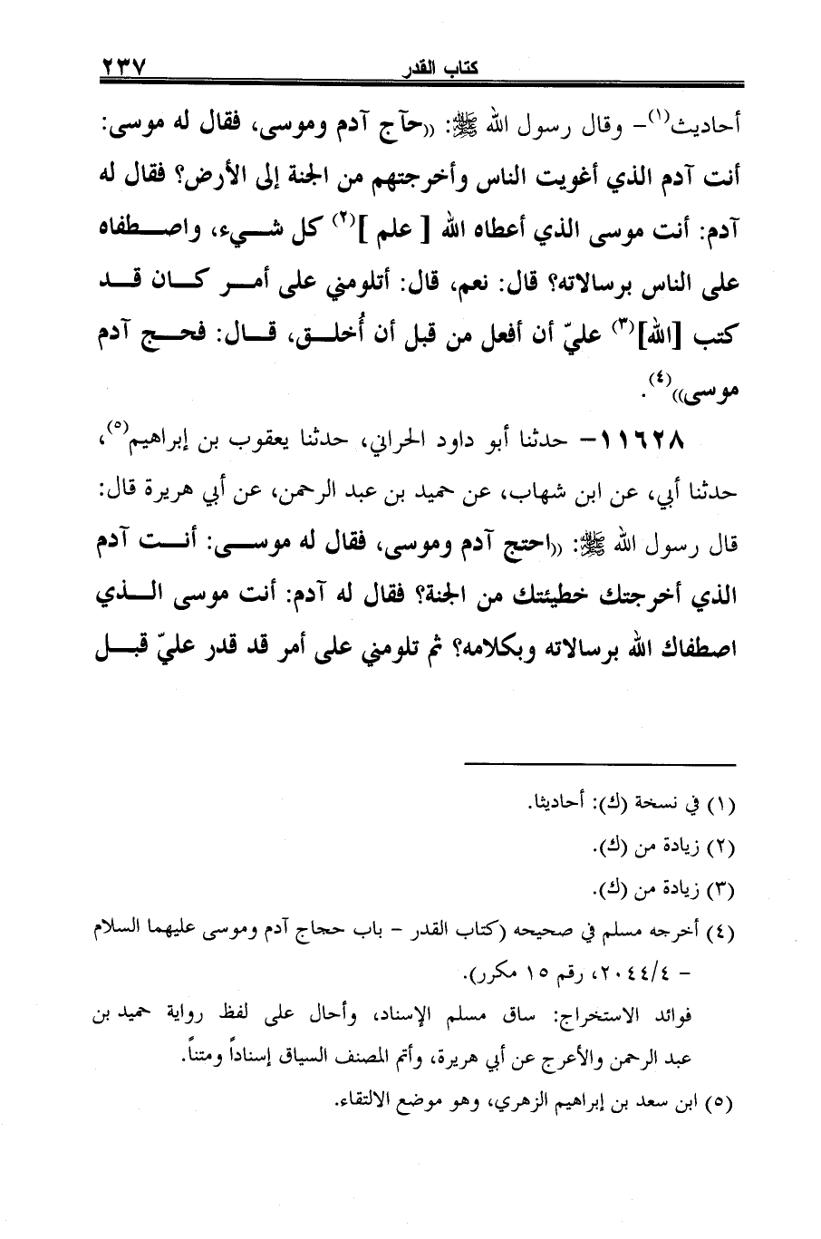 -[238]- أن أُخلق، قال: فحج آدم موسى" (¬2).