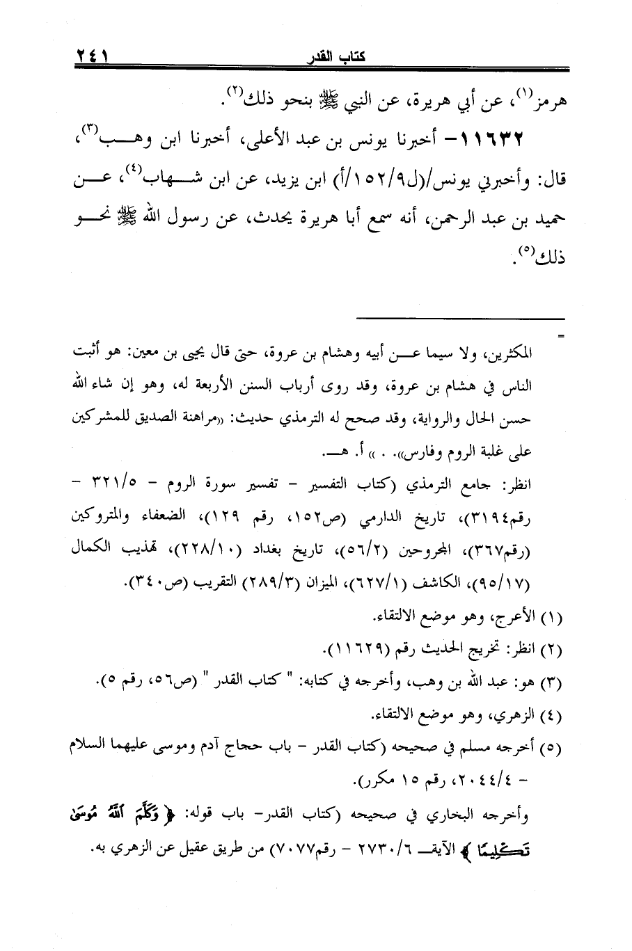 وأخرجه البخاري في صحيحه (كتاب القدر -باب قوله: {وَكَلَّمَ اللَّهُ مُوسَى تَكْلِيمًا} الآية- 6/ 2730 - رقم 7077) من طريق عقيل عن الزهري به.