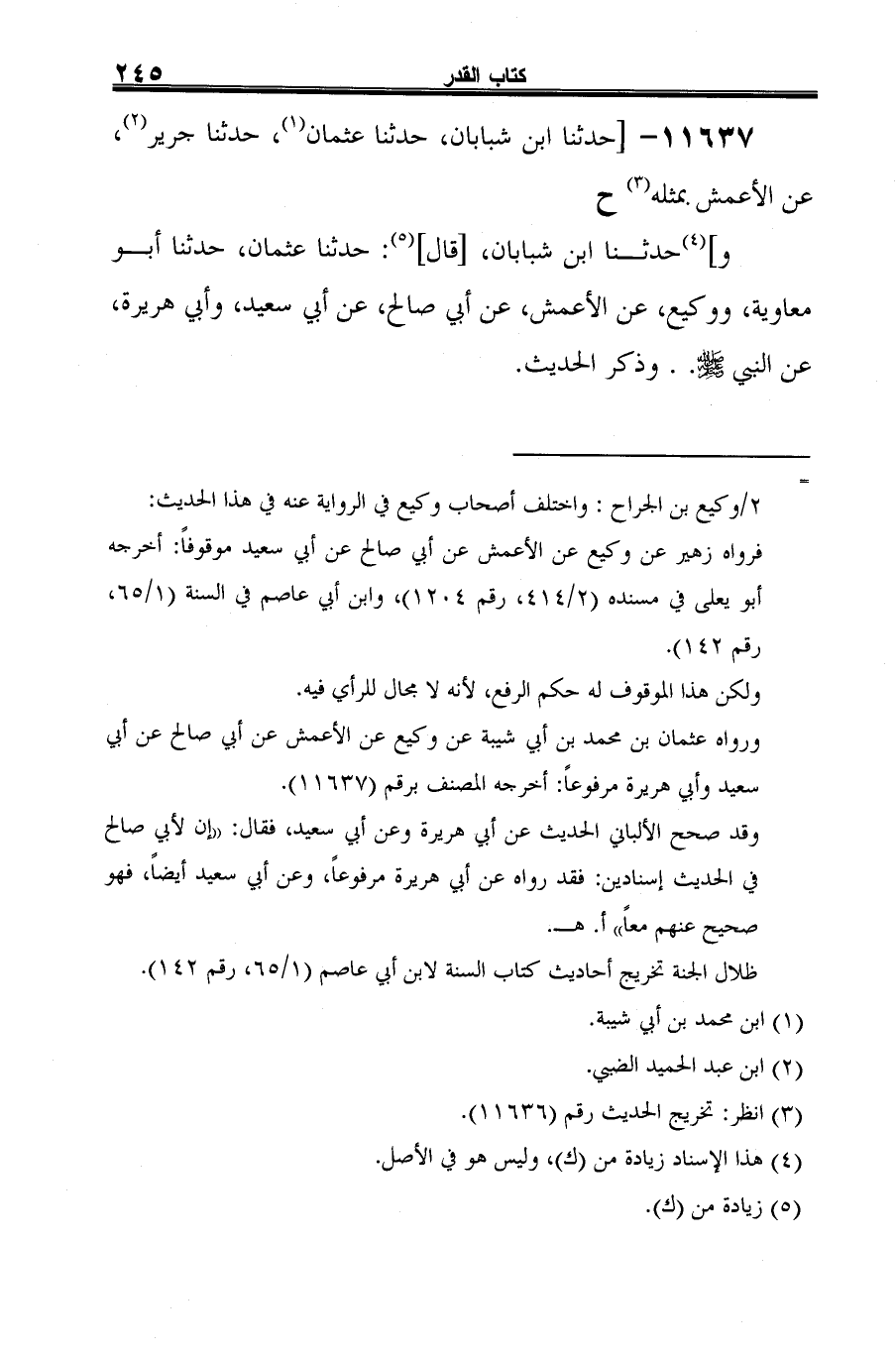 11637 - [حدثنا ابن شبابان، حدثنا عثمان (¬1)، حدثنا جرير (¬2)، عن الأعمش بمثله (¬3) ح