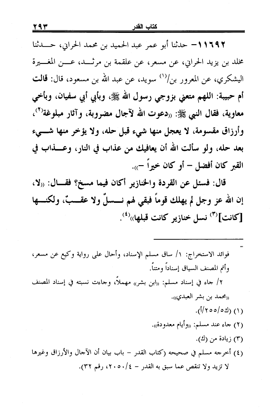 (¬4) أخرجه مسلم في صحيحه (كتاب القدر -باب بيان أن الآجال والأرزاق وغيرها لا تزيد ولا تنقص عما سبق به القدر-4/ 2050، رقم 32).