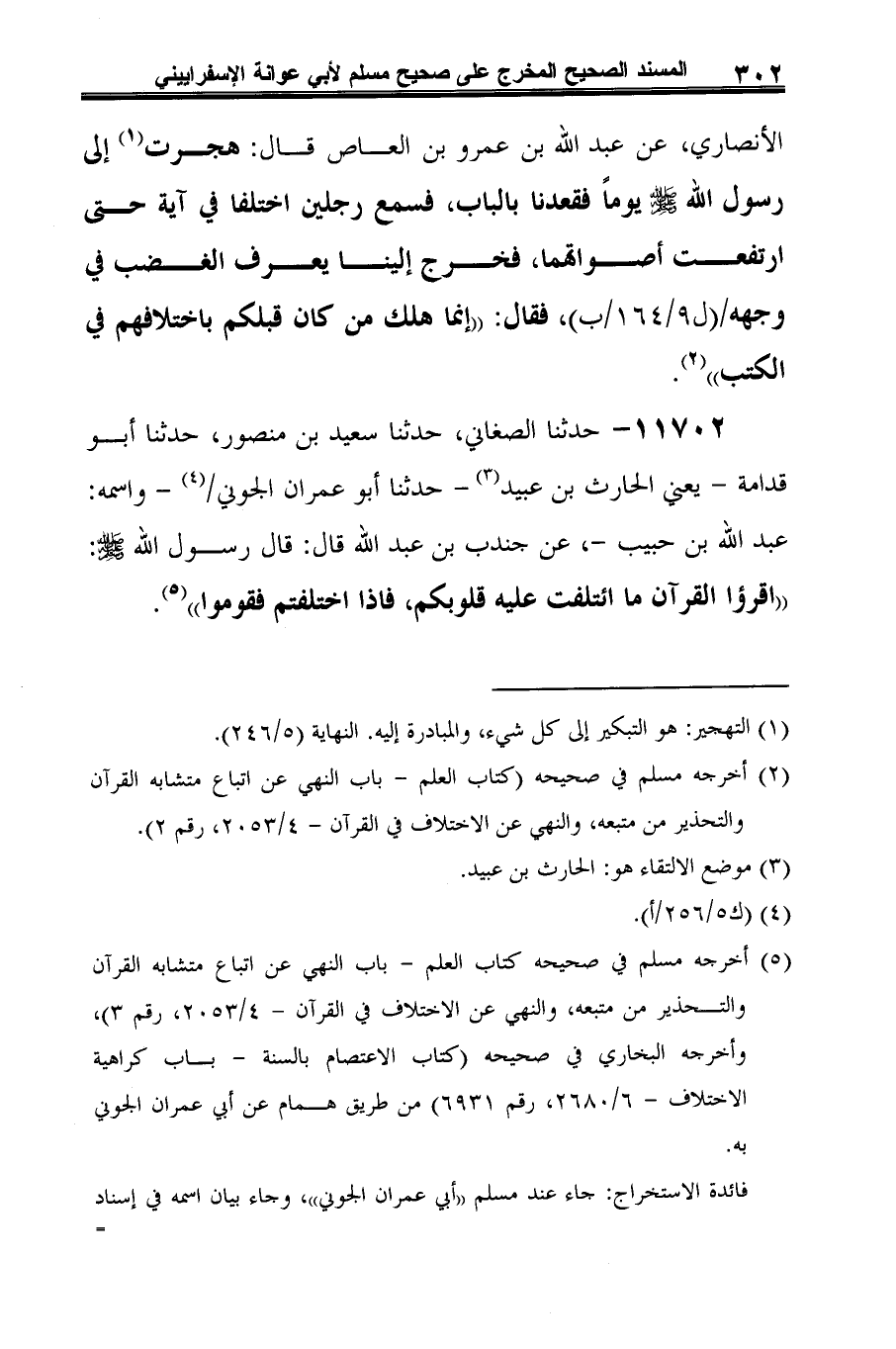 (¬3) أخرجه مسلم في صحيحه كتاب العلم -باب النهي عن اتباع متشابه القرآن والتحذير من متبعه، والنهي عن الاختلاف في القرآن-4/ 2053، رقم 3)، وأخرجه البخاري في صحيحه (كتاب الاعتصام بالسنة -باب كراهية الاختلاف-6/ 2680، رقم 6931) من طريق همام عن أبي عمران الجوني به.