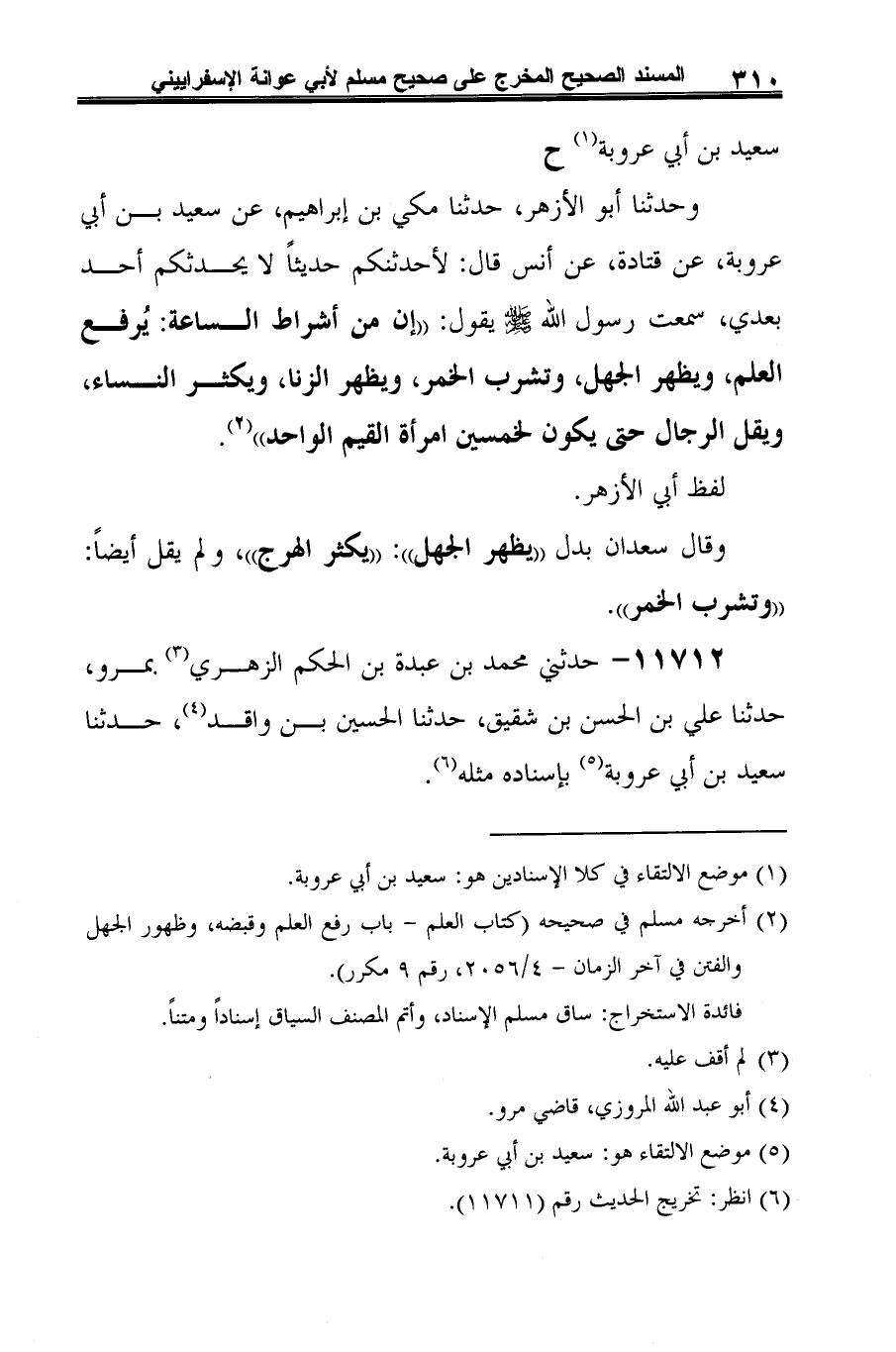 (¬3) موضع الالتقاء هو: سعيد بن أبي عروبة.
