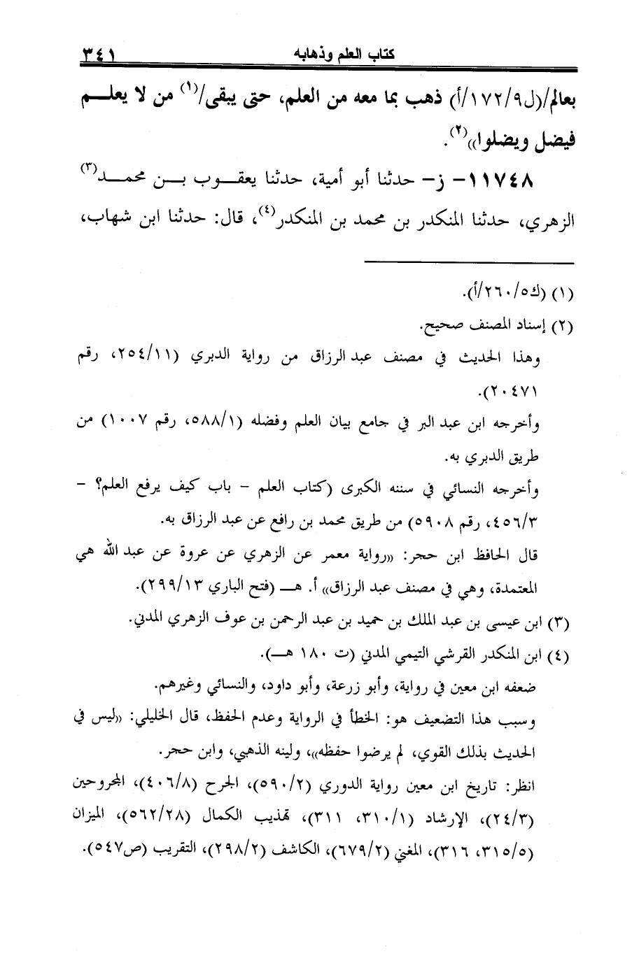 11748 - ز - حدثنا أبو أمية، حدثنا يعقوب بن محمد (¬1) الزهري، حدثنا المنكدر بن محمد بن المنكدر (¬2)، قال: حدثنا ابن شهاب،
