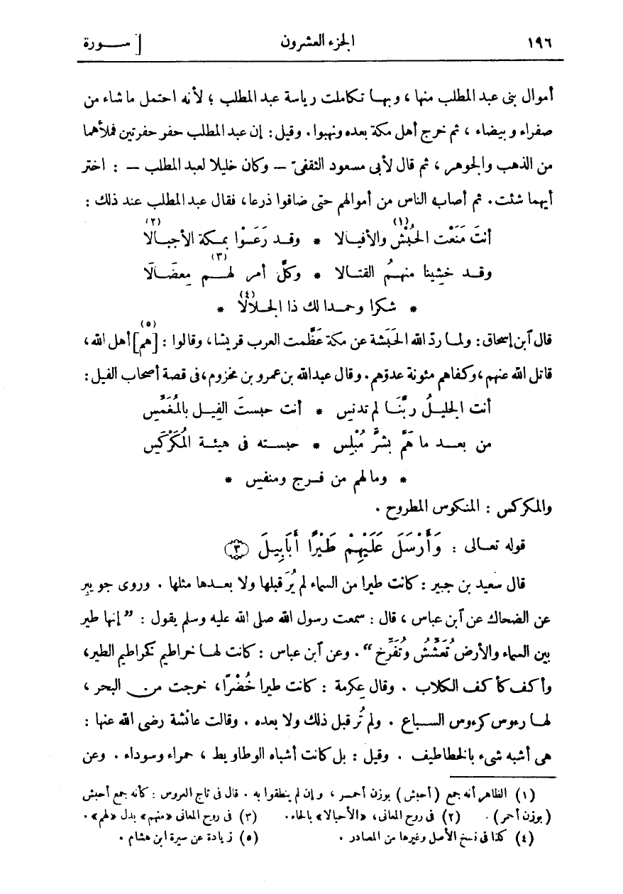 أَنْتَ مَنَعْتَ الْحَبَشَ «١» وَالْأَفْيَالَا ... وَقَدْ رَعَوْا بمكة الا جبالا «٢»