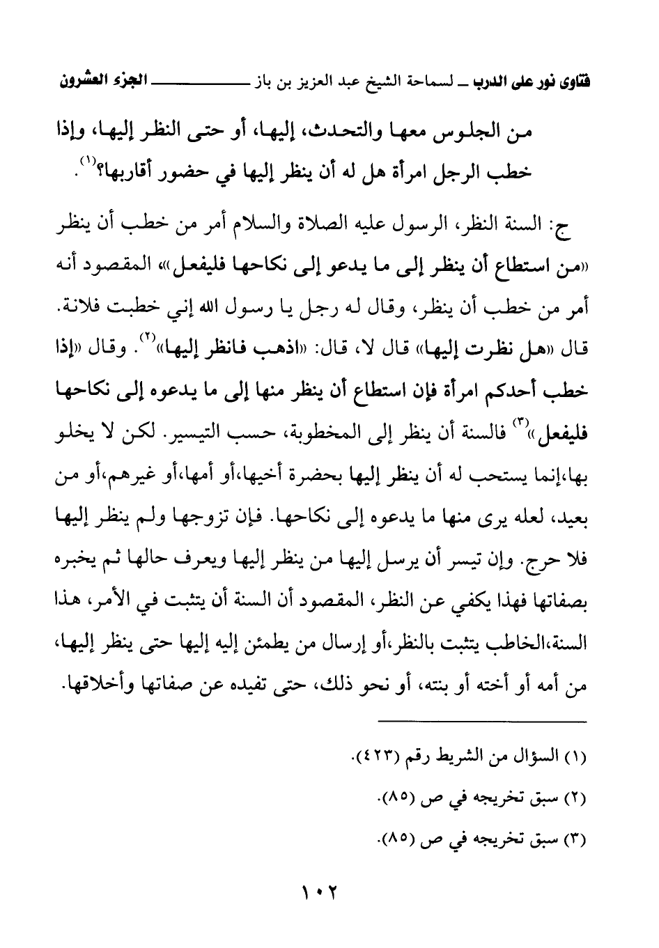 كتاب فتاوى نور على الدرب لابن باز بعناية الشويعر (اسم الجزء: 20)