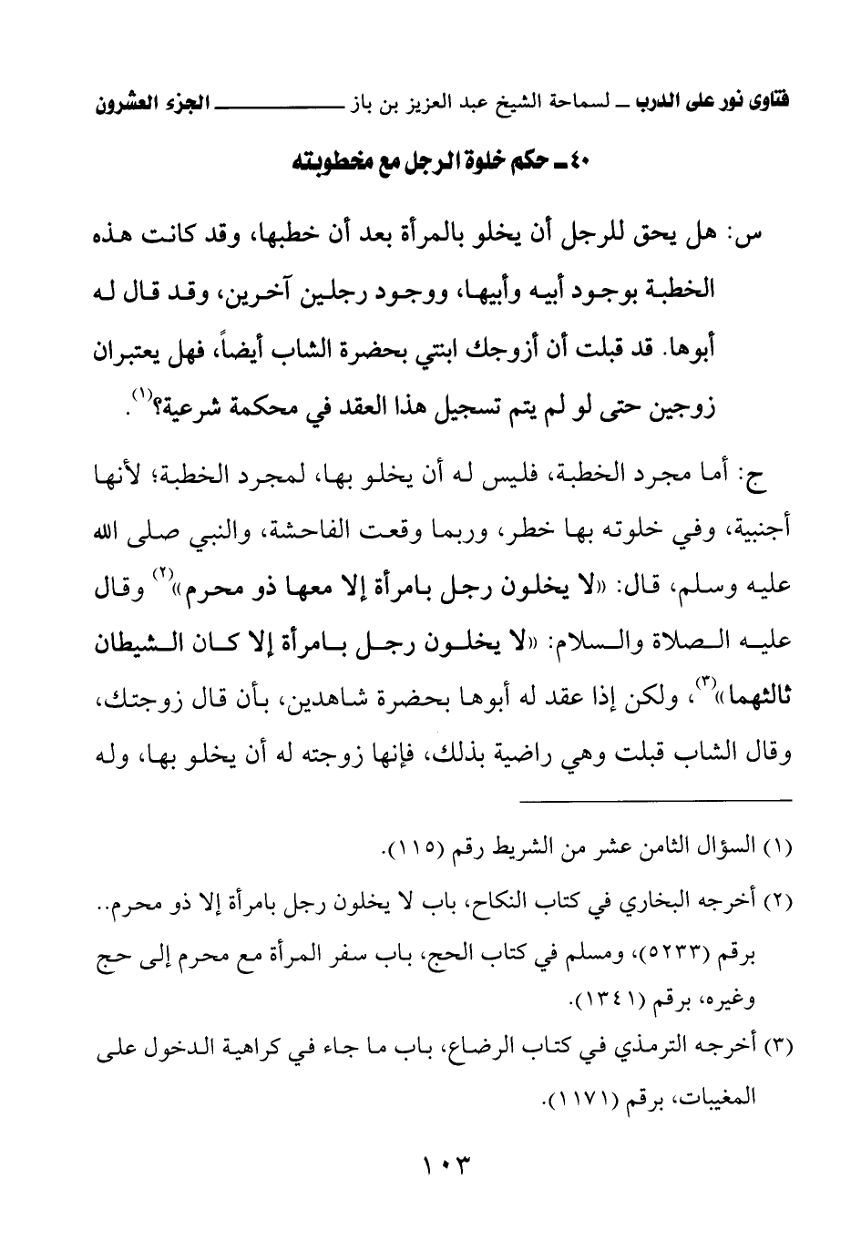 40 - حكم خلوة الرجل مع مخطوبته