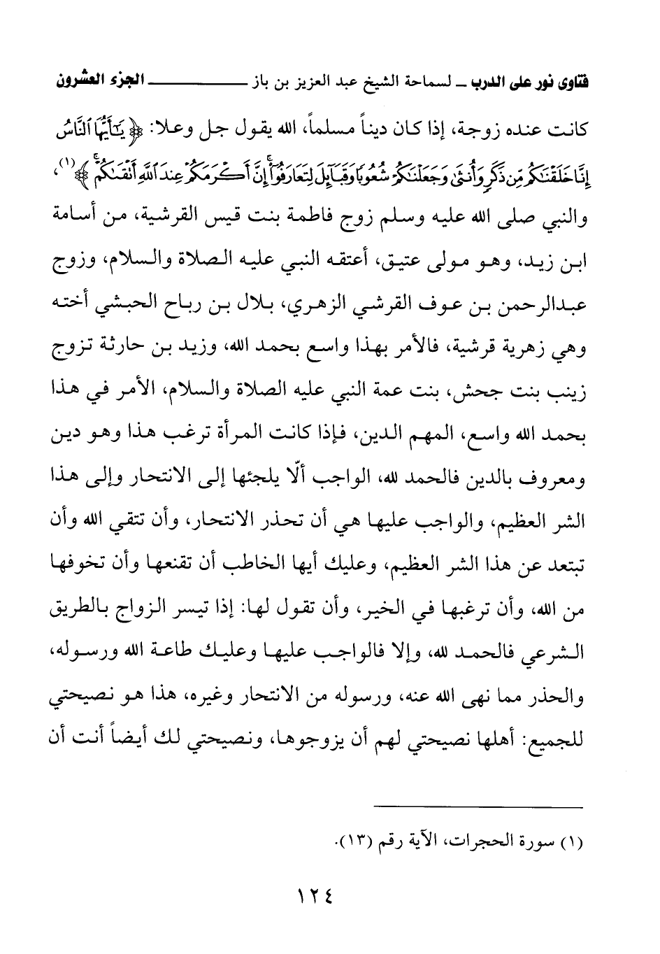 كتاب فتاوى نور على الدرب لابن باز بعناية الشويعر (اسم الجزء: 20)