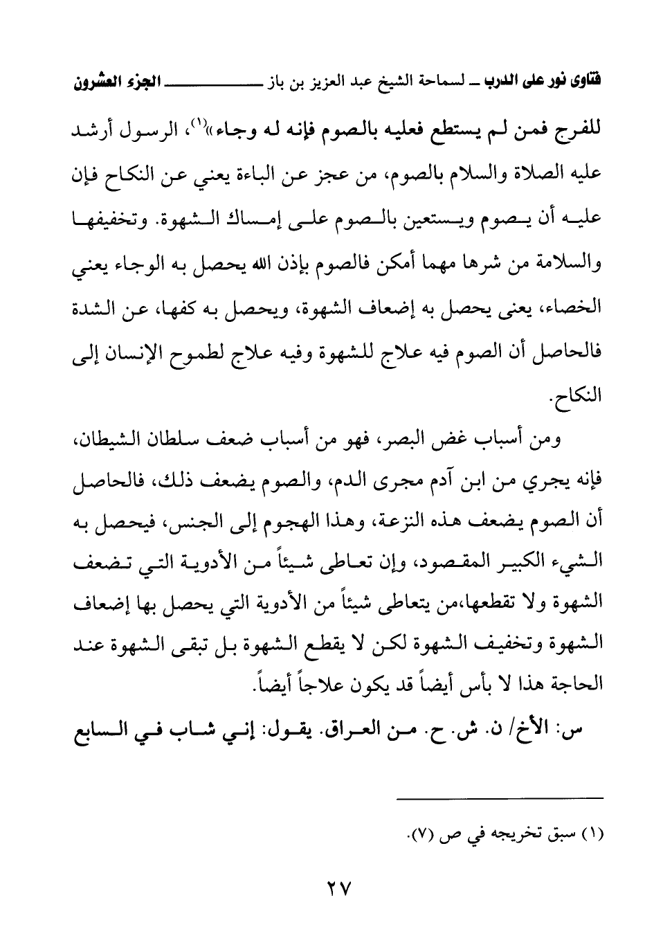 س: الأخ/ ن. ش. ح. من العراق. يقول: إني شاب في السابع