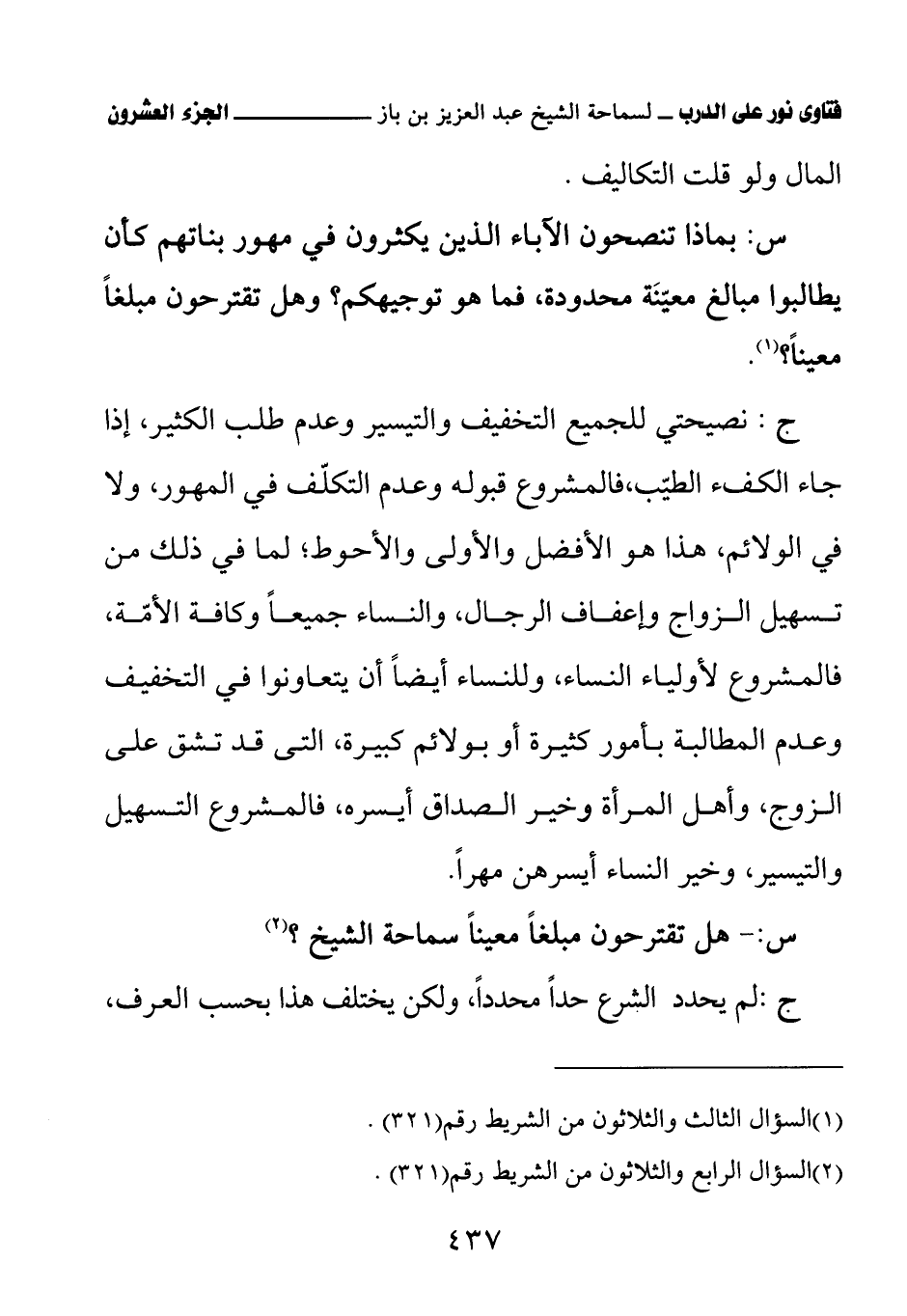 س: - هل تقترحون مبلغًا معينًا سماحة الشيخ؟ (¬1)