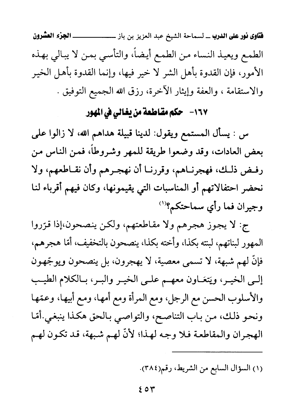 167 - حكم مقاطعة من يغالي في المهور