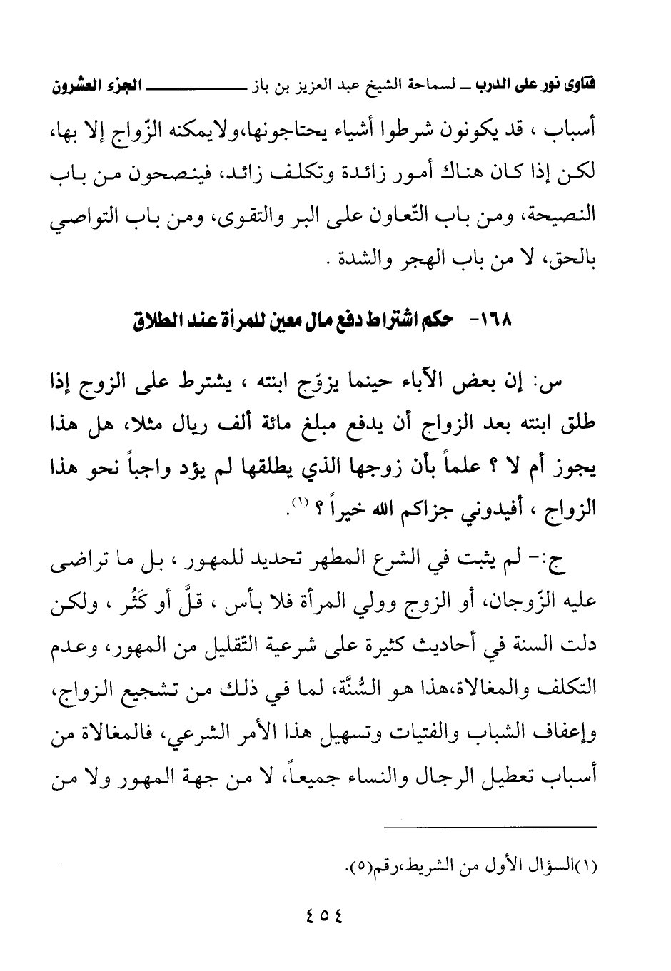 168 - حكم اشتراط دفع مال معين للمرأة عند الطلاق