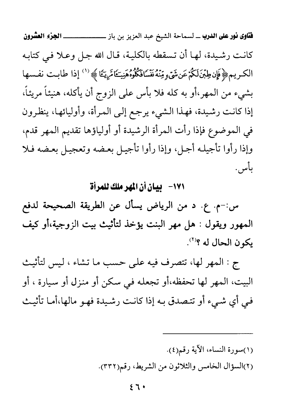 171 - بيان أن المهر ملك للمرأة