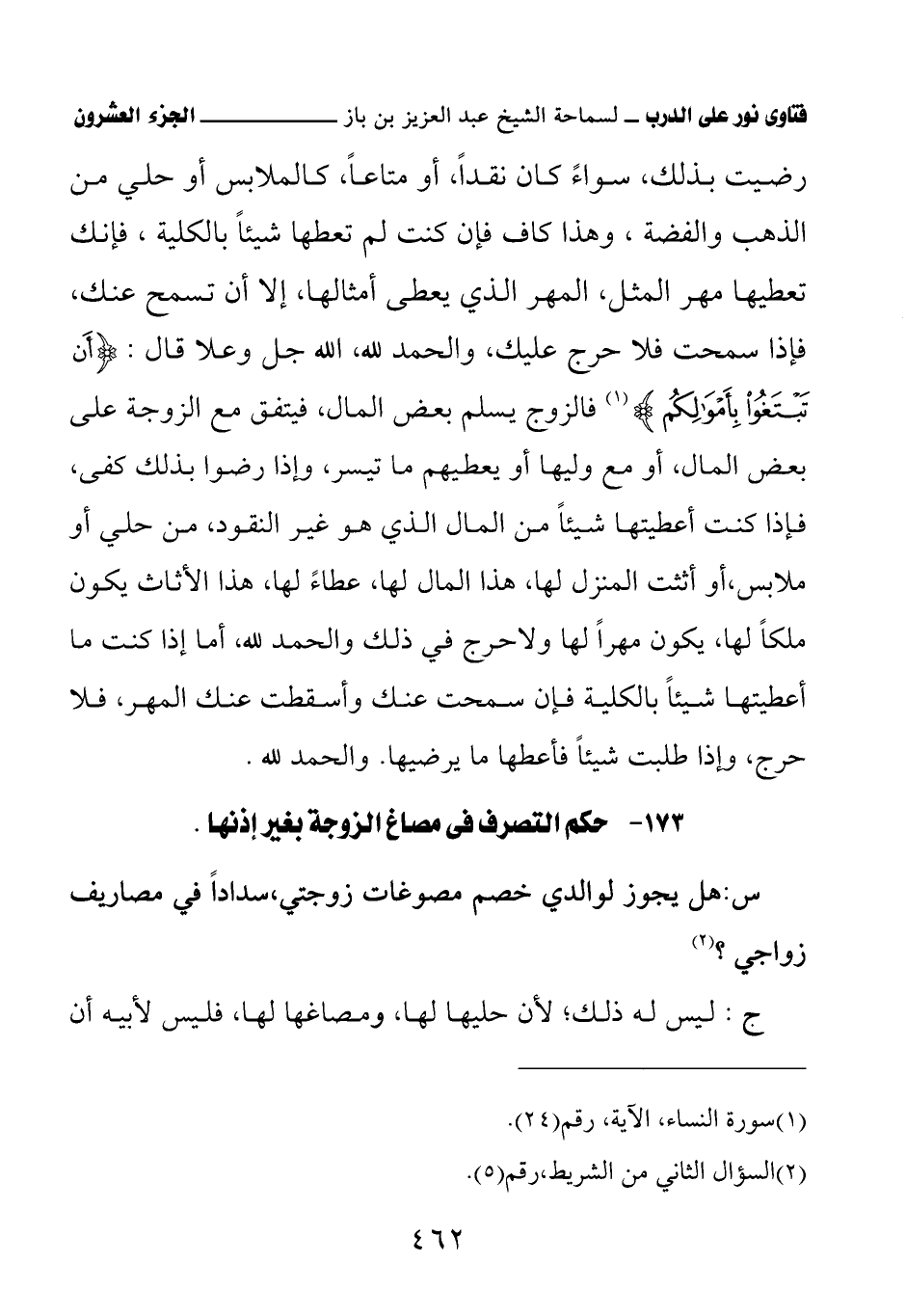 173 - حكم التصرف في مصاغ الزوجة بغير إذنها