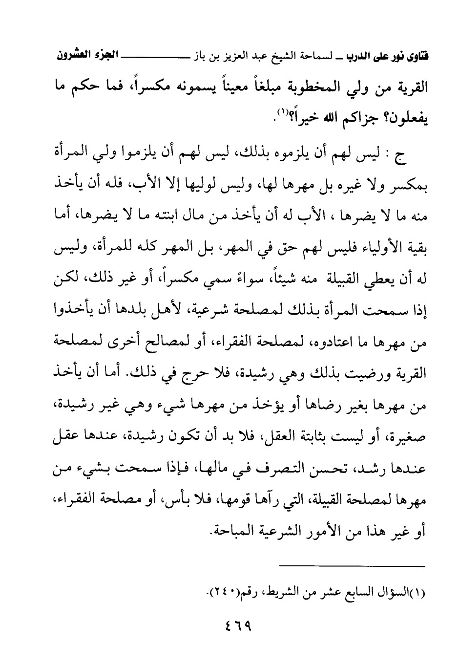 (¬1) السؤال السابع عشر من الشريط رقم (240).