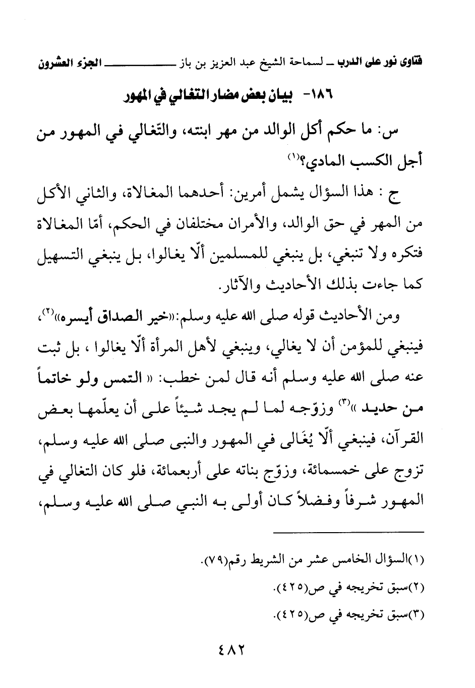 186 - بيان بعض مضار التغالي في المهور