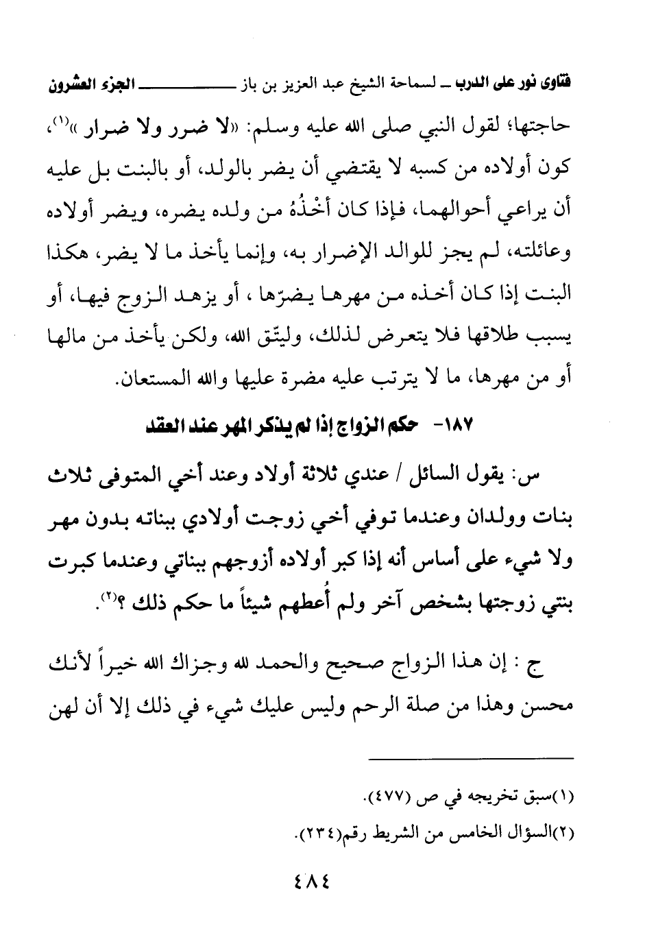 187 - حكم الزواج إذا لم يذكر المهر عند العقد