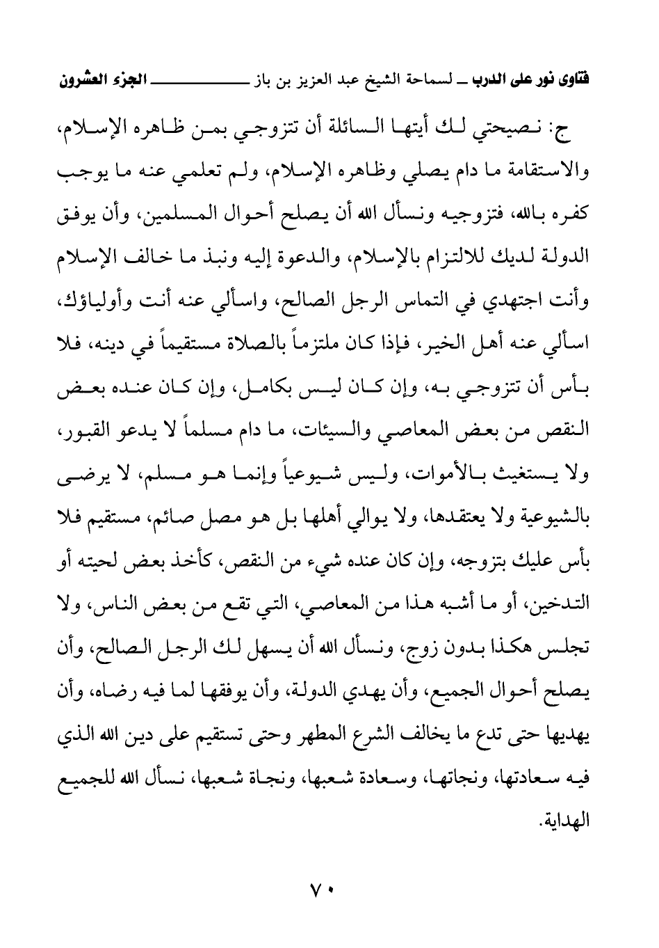 كتاب فتاوى نور على الدرب لابن باز بعناية الشويعر (اسم الجزء: 20)