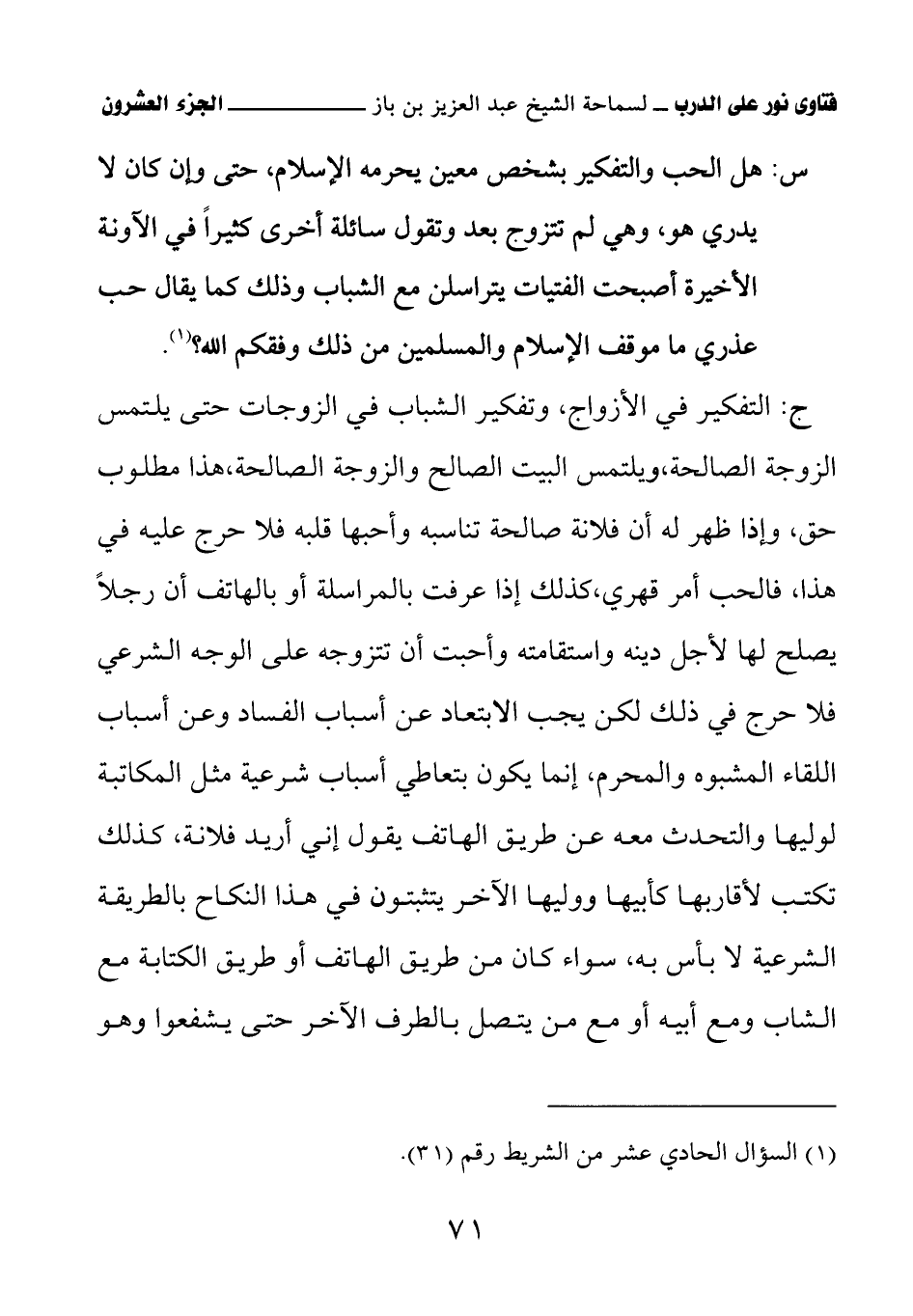 (¬1) السؤال الحادي عشر من الشريط رقم (31).