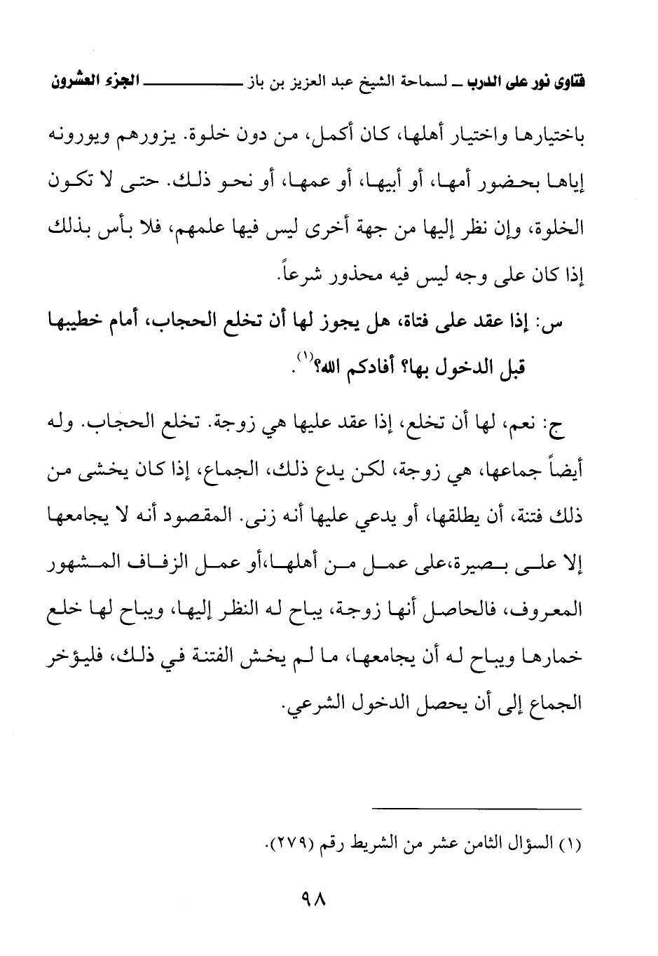 (¬1) السؤال الثامن عشر من الشريط رقم (279).