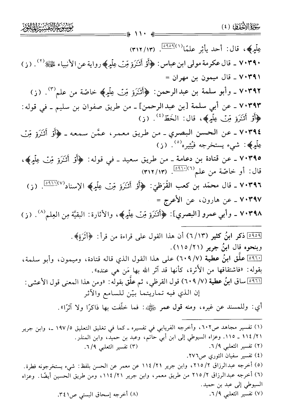 [٥٩٥٩] ذكر ابنُ كثير (١٣/ ٦) أن هذا القول على قراءة من قرأ: «أثَرَةٍ».