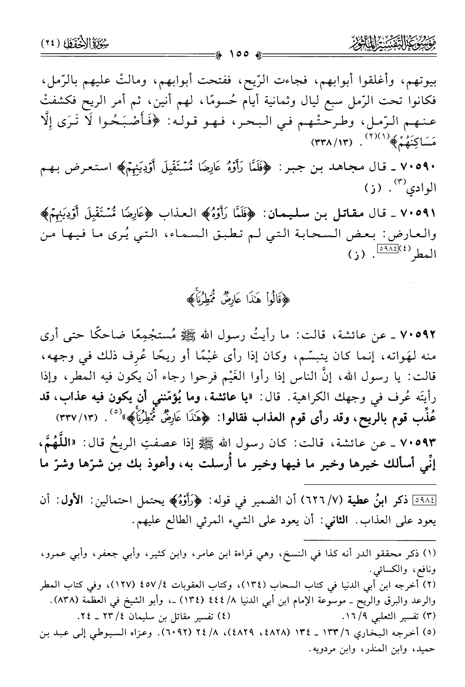 ٧٠٥٩٠ - قال مجاهد بن جبر: {فَلَمّا رَأَوْهُ عارِضًا مُسْتَقْبِلَ أوْدِيَتِهِمْ} استعرض بهم الوادي (¬٣). (ز)