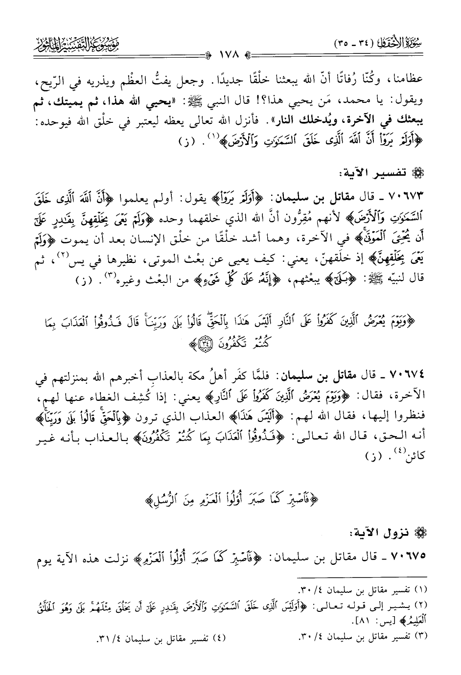 (¬٣) تفسير مقاتل بن سليمان ٤/ ٣٠.