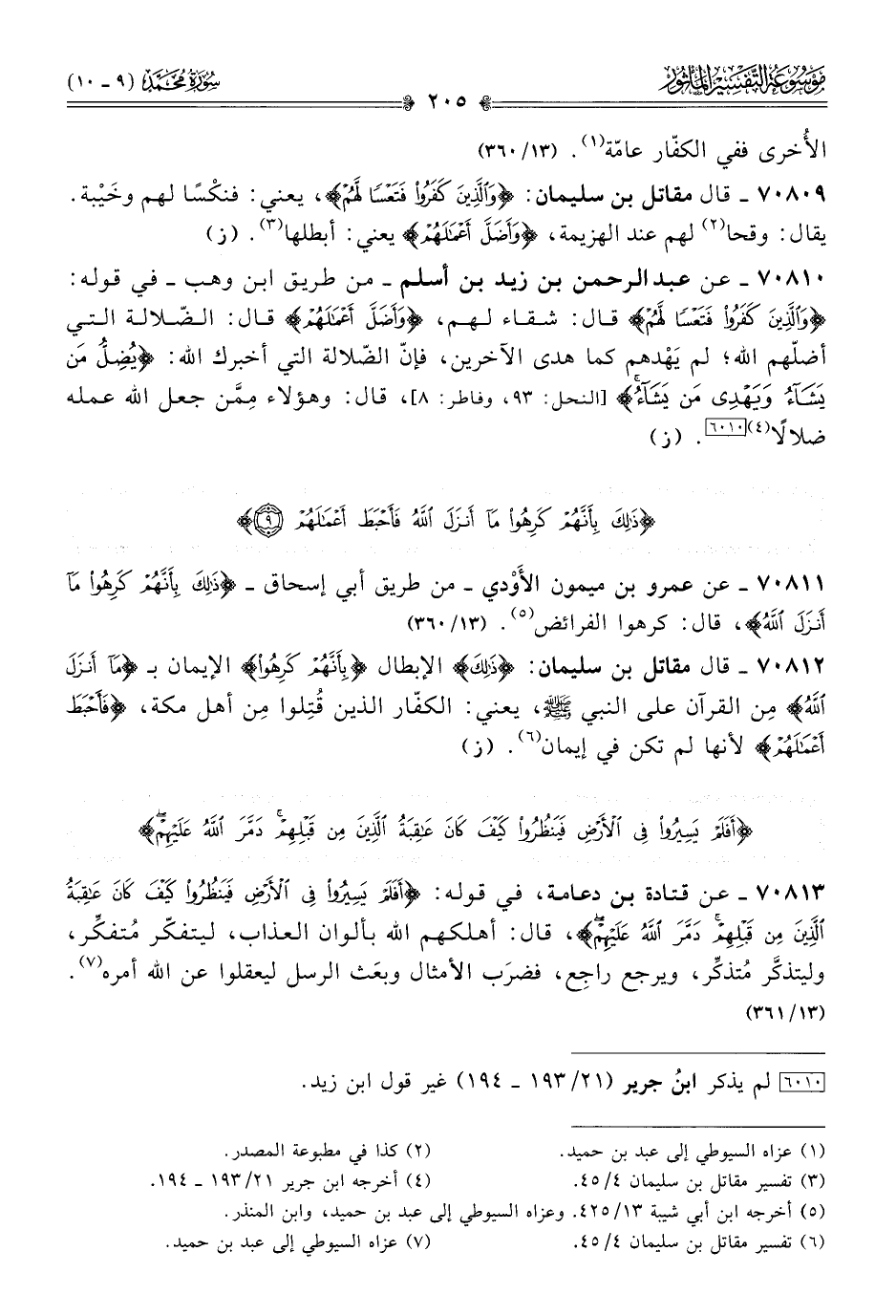 ٧٠٨١١ - عن عمرو بن ميمون الأَوْدي -من طريق أبي إسحاق- {ذَلِكَ بِأَنَّهُمْ كَرِهُوا ما أنْزَلَ اللَّهُ}، قال: كرهوا الفرائض (¬٥). (١٣/ ٣٦٠)