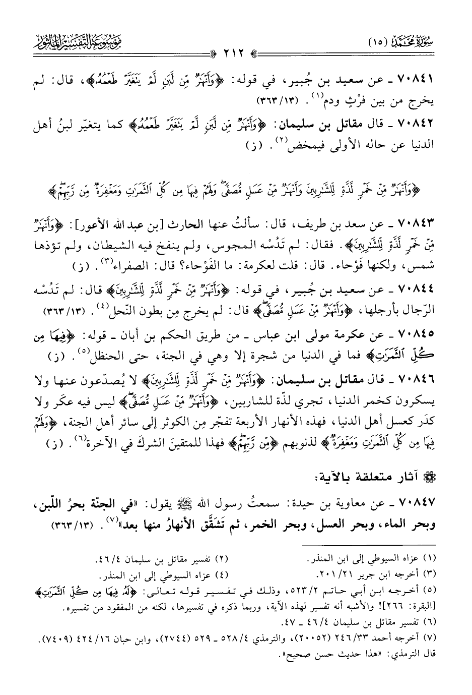 ٧٠٨٤٤ - عن سعيد بن جُبير، في قوله: {وأَنْهارٌ مِن خَمْرٍ لَذَّةٍ لِلشّارِبِينَ} قال: لم تَدُسْه الرّجال بأرجلها، {وأَنْهارٌ مِن عَسَلٍ مُصَفًّى} قال: لم يخرج مِن بطون النّحل (¬٤). (١٣/ ٣٦٣)