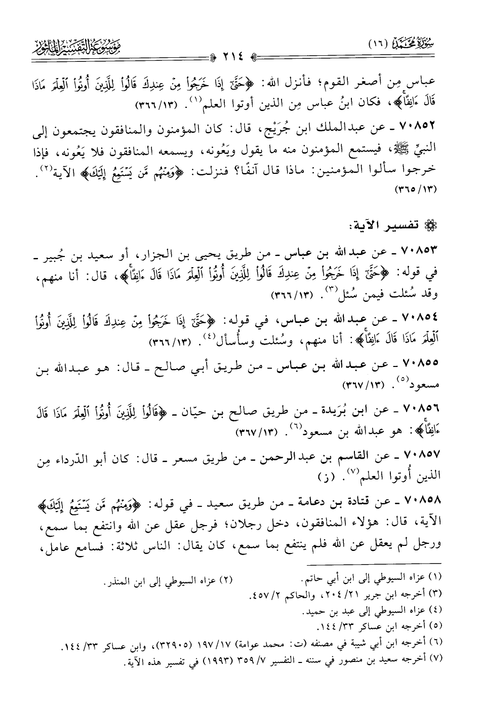 ٧٠٨٥٦ - عن ابن بُرَيدة -من طريق صالح بن حيّان- {قالُوا لِلَّذِينَ أُوتُوا العِلْمَ ماذا قالَ آنِفًا}: هو عبد الله بن مسعود (¬٦). (١٣/ ٣٦٧)