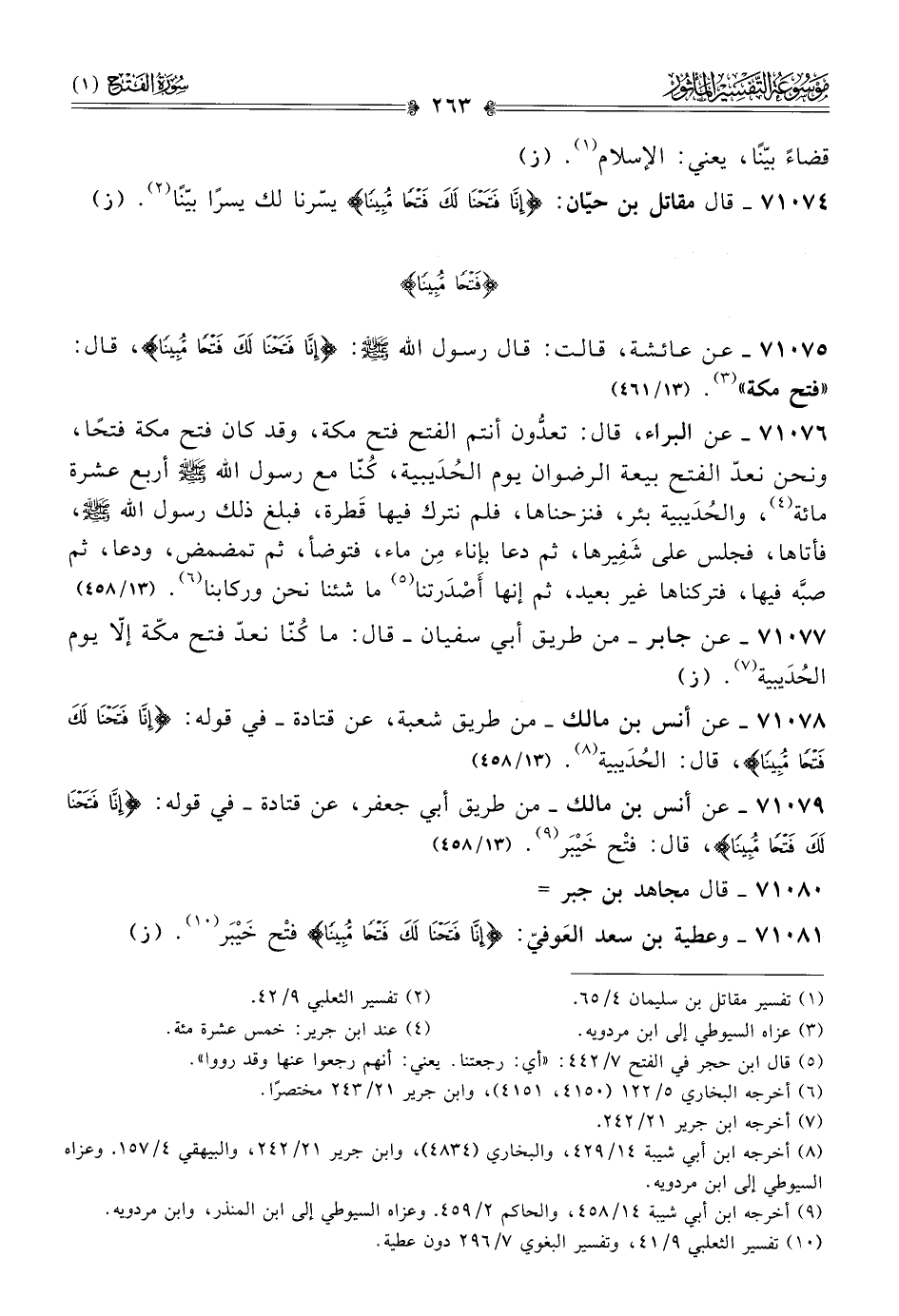٧١٠٨١ - وعطية بن سعد العَوفيّ: {إنّا فَتَحْنا لَكَ فَتْحًا مُبِينًا} فتْح خَيْبَر (¬١٠). (ز)