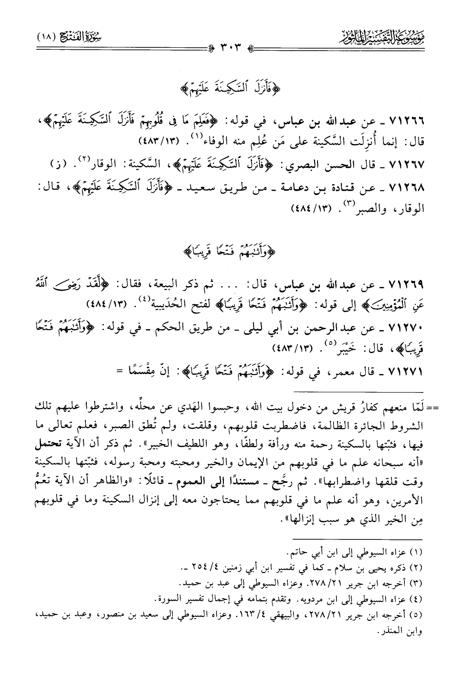 ٧١٢٦٩ - عن عبد الله بن عباس، قال: ... ثم ذكر البيعة، فقال: {لَقَدْ رَضِيَ اللَّهُ عَنِ المُؤْمِنِينَ} إلى قوله: {وأَثابَهُمْ فَتْحًا قَرِيبًا} لفتح الحُدَيبية (¬٤). (١٣/ ٤٨٤)