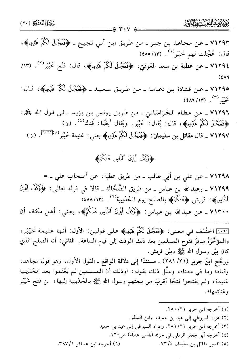 ٧١٢٩٣ - عن مجاهد بن جبر -من طريق ابن أبي نجيح- {فَعَجَّلَ لَكُمْ هَذِهِ}، قال: عُجِّلت لهم خَيْبَر (¬١). (١٣/ ٤٨٥)
