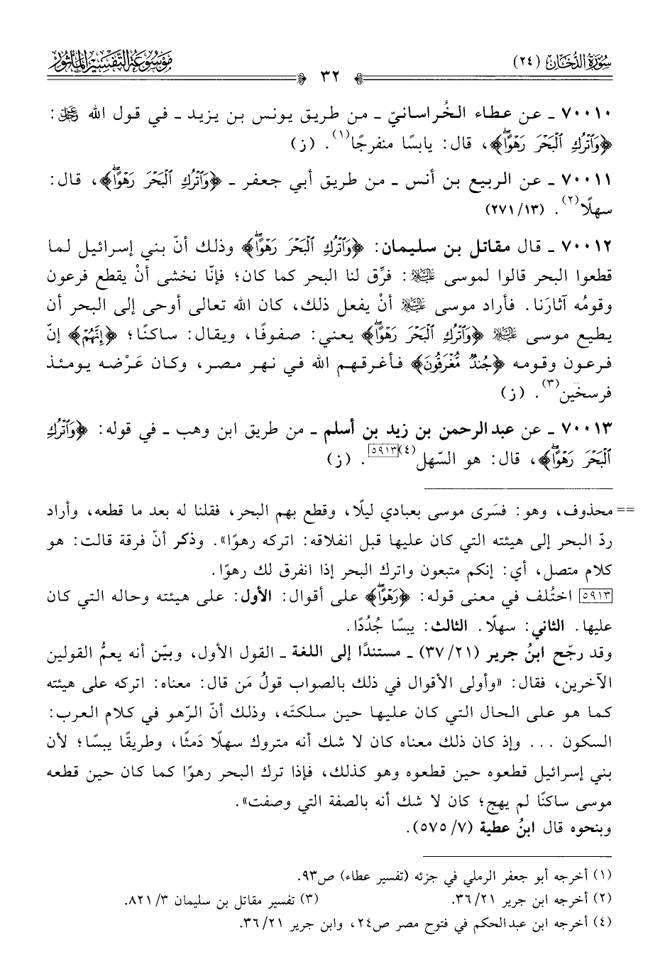 ٧٠٠١٣ - عن عبد الرحمن بن زيد بن أسلم -من طريق ابن وهب- في قوله: {واتْرُكِ البَحْرَ رَهْوًا}، قال: هو السّهل (¬٤) [٥٩١٣]. (ز)