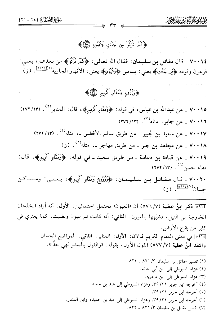 ٧٠٠٢٠ - قال مقاتل بن سليمان: {وزُرُوعٍ ومَقامٍ كَرِيمٍ}، يعني: ومساكن حِسان (¬٧) [٥٩١٥]. (ز)