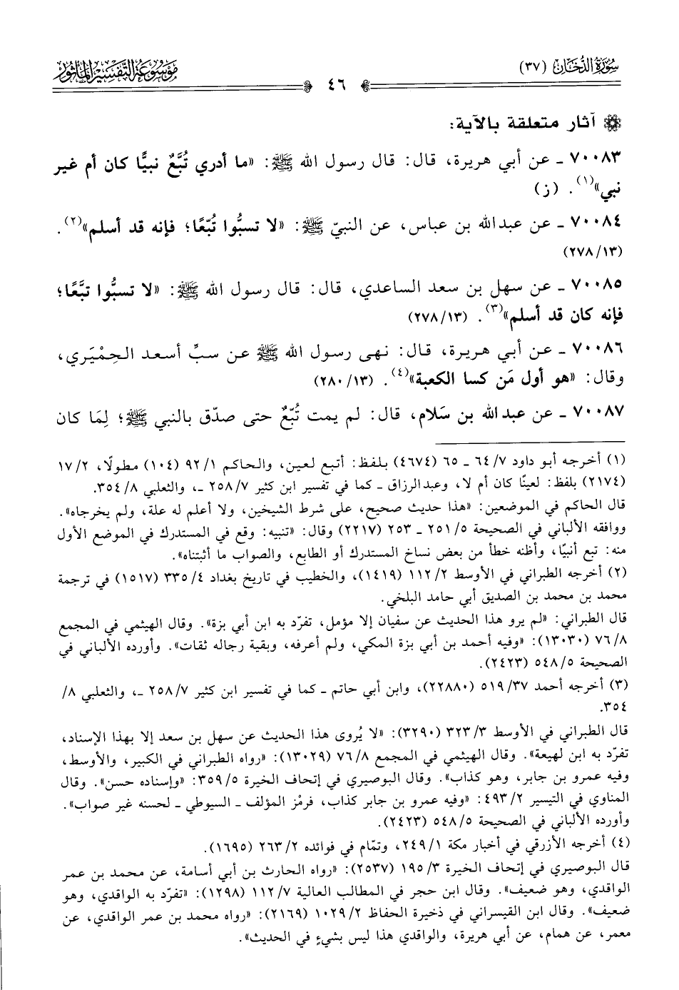 (¬٣) أخرجه أحمد ٣٧/ ٥١٩ (٢٢٨٨٠)، وابن أبي حاتم -كما في تفسير ابن كثير ٧/ ٢٥٨ - ، والثعلبي ٨/ ٣٥٤.