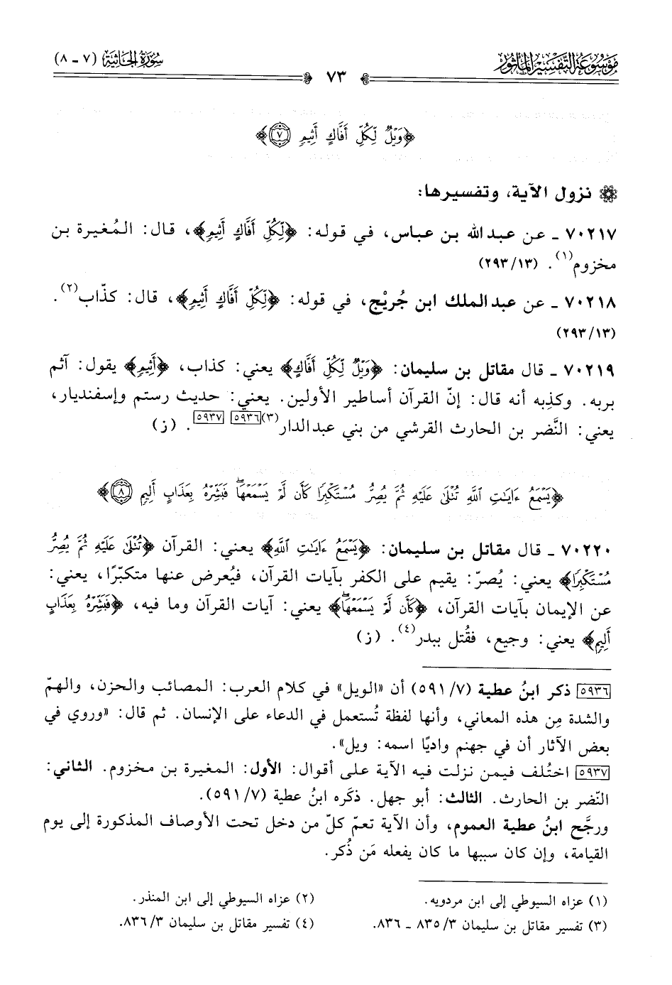 ٧٠٢١٧ - عن عبد الله بن عباس، في قوله: {لِكُلِّ أفّاكٍ أثِيمٍ}، قال: المُغيرة بن مخزوم (¬١). (١٣/ ٢٩٣)