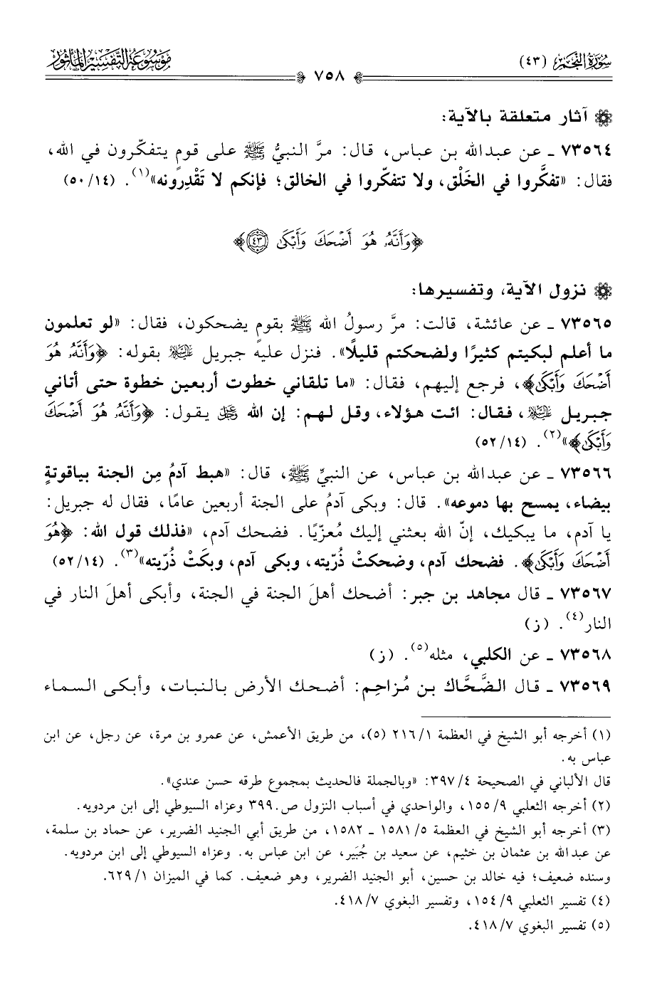 ٧٣٥٦٧ - قال مجاهد بن جبر: أضحك أهلَ الجنة في الجنة، وأبكى أهلَ النار في النار (¬٤). (ز)