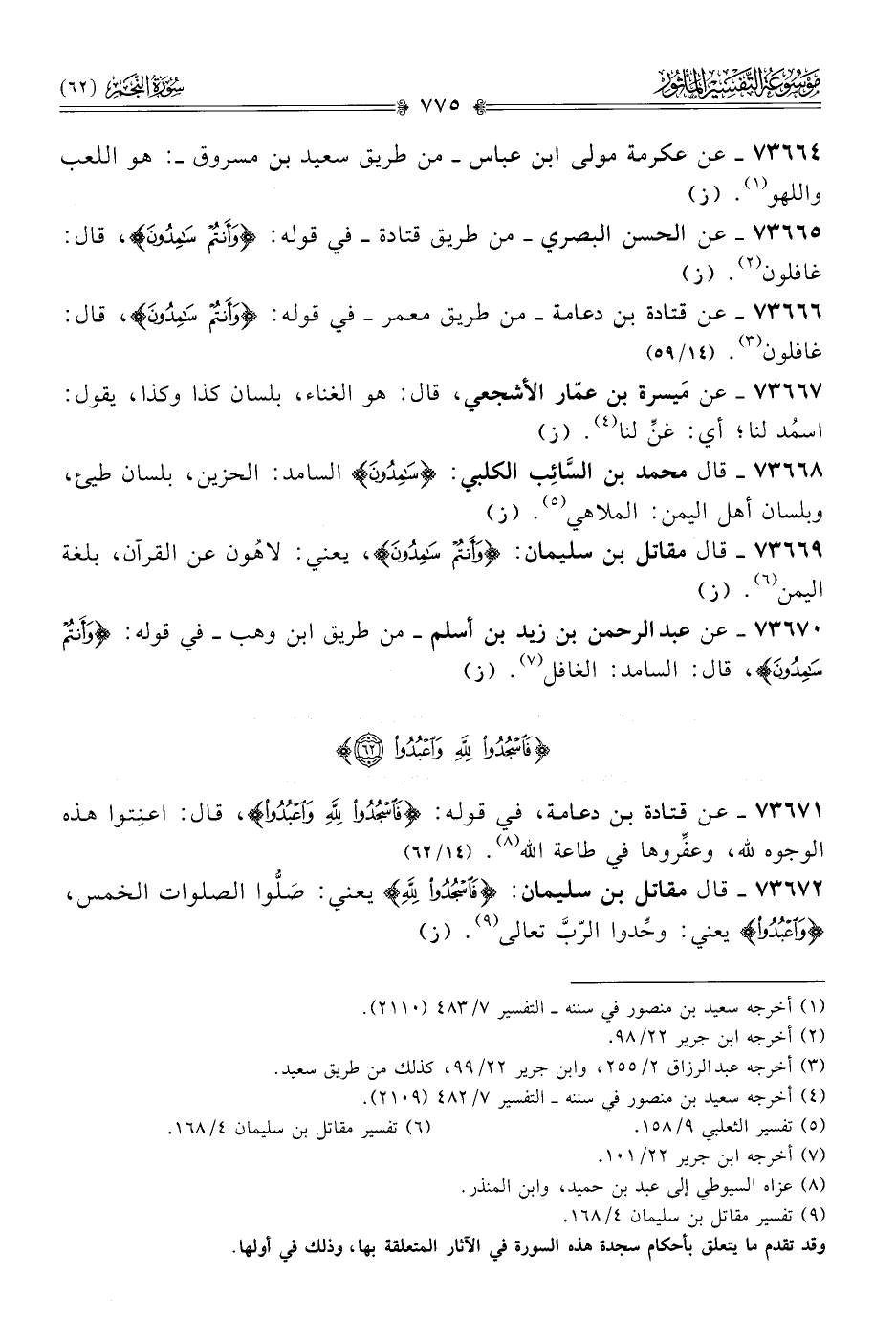 ٧٣٦٦٦ - عن قتادة بن دعامة -من طريق معمر- في قوله: {وأَنْتُمْ سامِدُونَ}، قال: غافلون (¬٣). (١٤/ ٥٩)