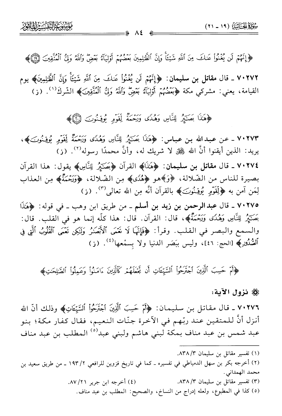 (¬٣) تفسير مقاتل بن سليمان ٣/ ٨٣٨.