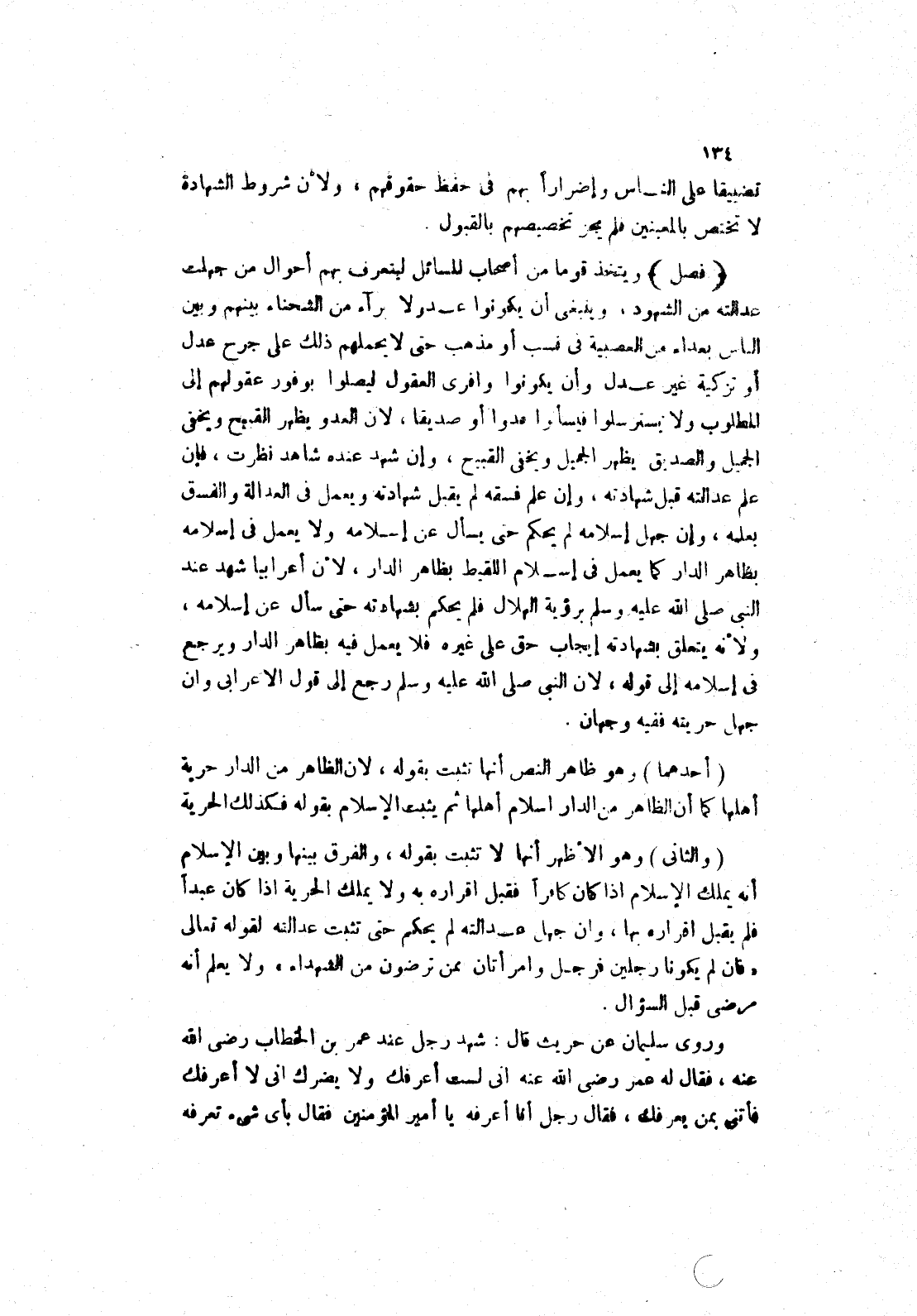 وروى سليمان عن حريث قال: شهد رجل عند عُمَرَ بْنِ الْخَطَّابِ رَضِيَ اللَّهُ عَنْهُ، فَقَالَ له عمر رضى الله عنه انى ليست أعرفك ولا يضرك انى لا أعرفك