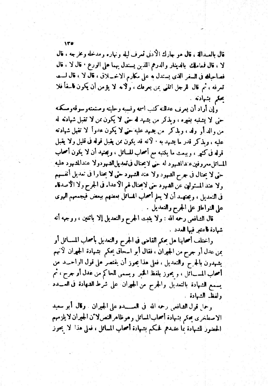 أصحاب المسائل، ويجوز بلفظ الخبر ويسمى للحاكم من عدل أو جرح، ثم يسمع الشهادة بالتعديل والجرح من الجيران على شرط الشهادة في العدد ولفظ الشهادة.