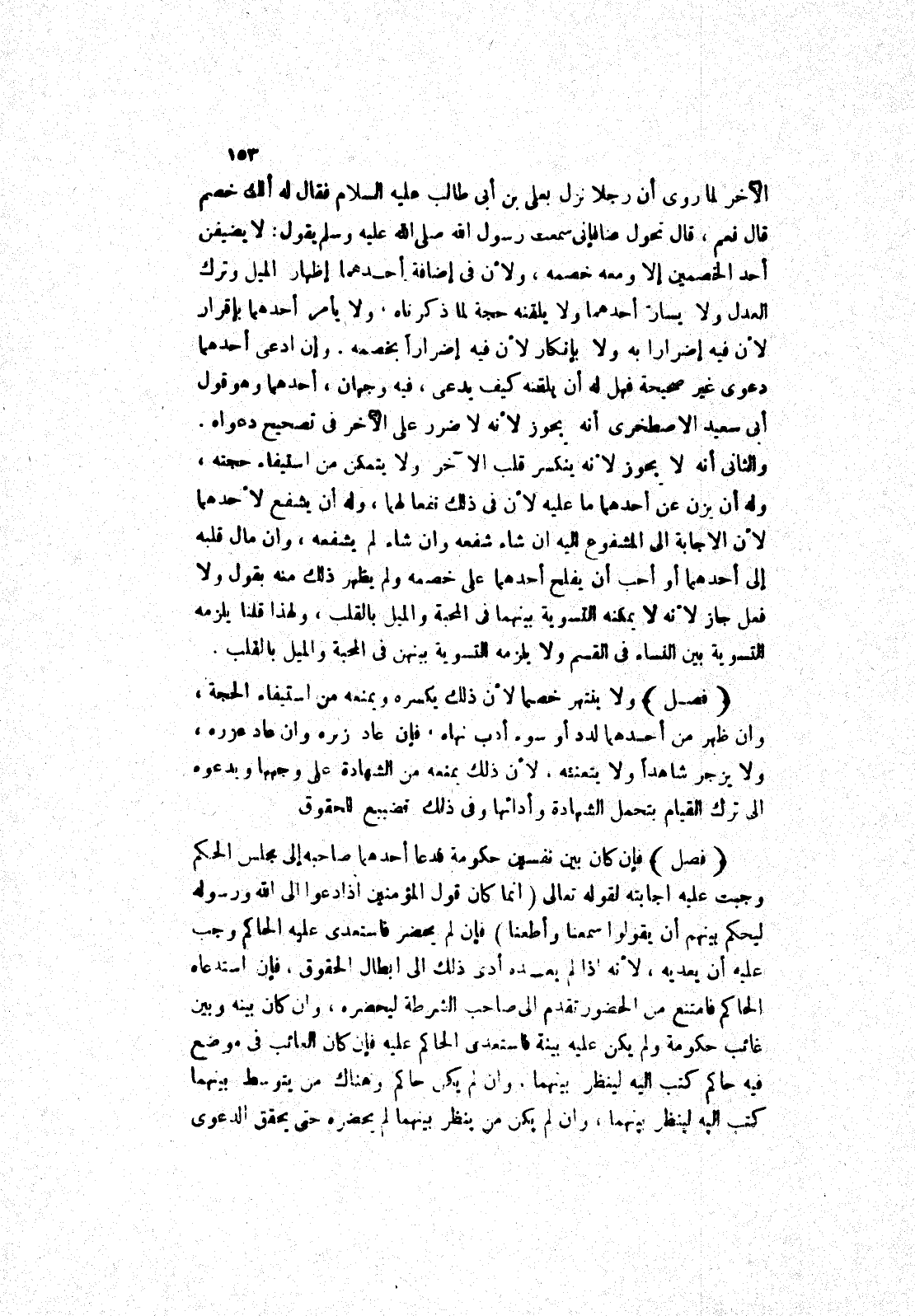 إلى أحدهما أو أحب أن يفلح أحدهما على خصمه ولم يظهر ذلك منه بقول ولا فعل جاز لانه لا يمكنه التسوية بينهما في المحبة والميل بالقلب، ولهذا قلنا يلزمه التسوية بين النساء في القسم ولا يلزمه التسوية ببنهن في المحبة والميل بالقلب.