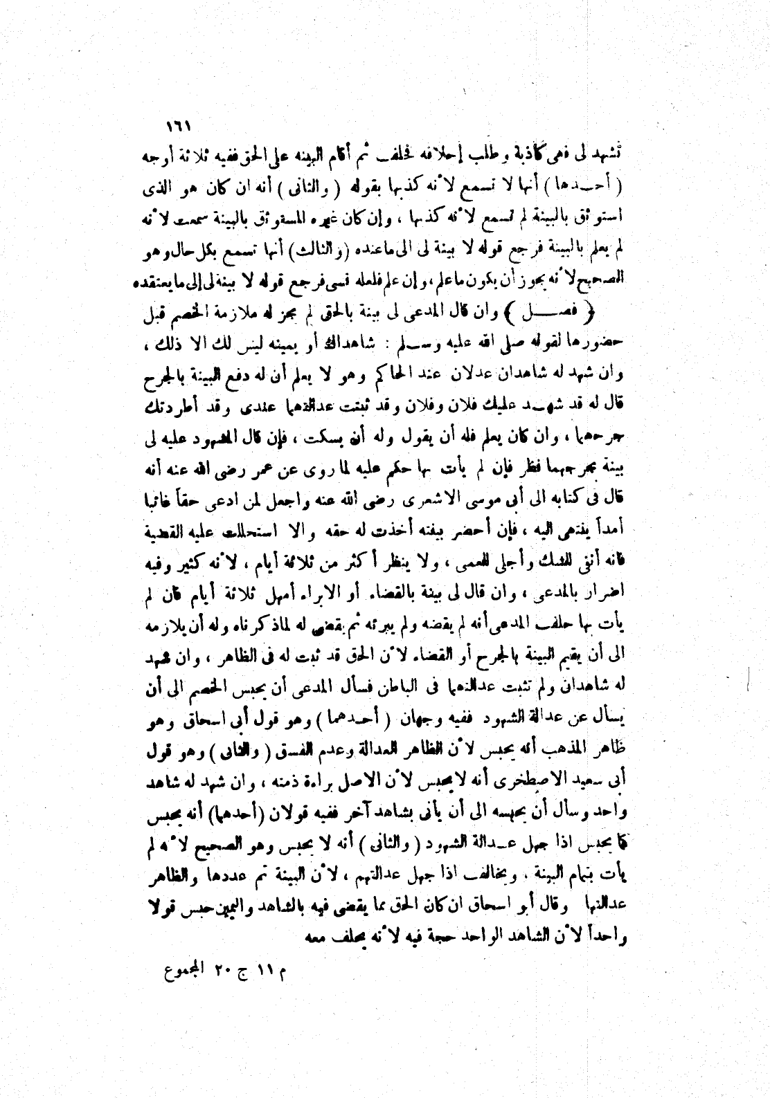 وان قال المدعى لى بينة بالحق لم يجز له ملازمة الخصم قبل حضورها لقوله صلى الله عليه وسلم: شاهداك أو يمينه ليس لك الا ذلك، وان شهد له شاهدان عدلان عند الحاكم وهو لا يعلم أن له دفع البينة بالجرح قال له قد شهد عليك فلان وفلان وقد ثبتت عدالتهما عندي وقد أطردتك جرحهما، وان كان يعلم فله أن يقول وله أن يسكت، فإن قال المشهود عليه لى بينة بحرجهما نظر فإن لم يأت بها حكم عليه لِمَا رُوِيَ عَنْ عُمَرَ رَضِيَ اللَّهُ عَنْهُ أَنَّهُ قَالَ في كتابه إلَى أَبِي مُوسَى الْأَشْعَرِيِّ رَضِيَ اللَّهُ عَنْهُ واجعل لمن ادعى حقا غائبا أمدا ينتهى إليه، فإن أحضر بينته أخذت له حقه والا استحللت عليه القضية فانه أنفى للشك وأجلى العمى، ولا ينظر أكثر من ثلاثة أيام، لانه كثير وفيه اضرار بالمدعى، وان قال لى بينة بالقضاء أو الابراء أمهل ثلاثة أيام فان لم يأت بها حلف المدعى أنه لم يقضه ولم يبرئه ثم يقضى له لما ذكرناه وله أن يلازمه إلى أن يقيم البينة بالجرح أو القضاء لان الحق قد ثبت له في الظاهر، وان شهد له شاهدان ولم تثبت عدالتهما في الباطن فسأل المدعى أن يحبس الخصم إلى أن يسأل عن عدالة الشهود فَفِيهِ وَجْهَانِ