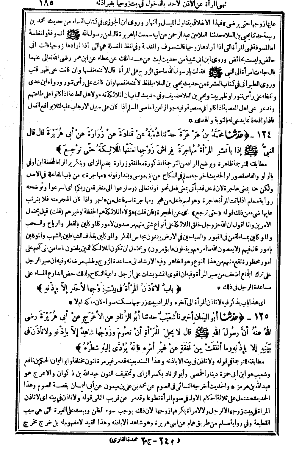 - (بابٌ لَا تَأذن المَرْأةُ فِي بيْتِ زَوْجِها لأحدٍ إلاّ بإذْنهِ) 2.