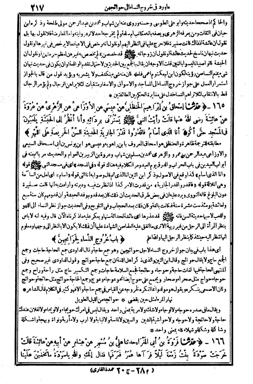 511 - (بابُ خُرُوجِ النِّساءِ لِحَوَائِجِهِنَّ)