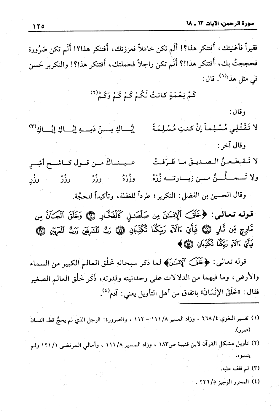 (3). هكذا ورد البيت في جميع نسخ الأصل وتفسير ابن عادل وهو ملفق من قصيدتين. فالشطر الأول من معلقة زهير. والبيت كما في ديوانه ومعلقته: