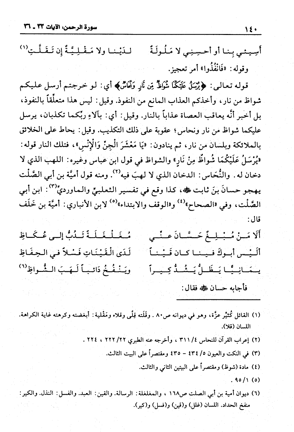 (1). كذا في بعض نسخ الأصل. وفي بعضها: (فك السالم وهي قال طرفة). بياض بعد (وهي). وفي تفسير الثعلبي: (وفك السالم وهي حروف الفطن قال طرفة). ولم نهتد لوجه الصواب فيه.